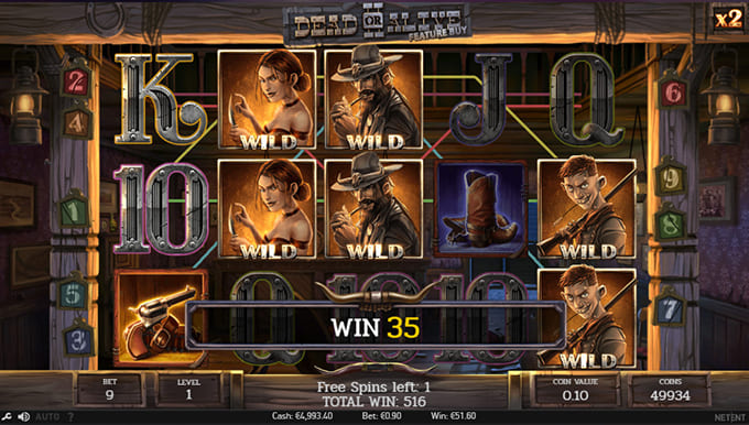 Игровой автомат Dead or Alive 2 оснащен 5 барабанами и 9 линиями выплат. В нем есть несколько специальных функций, таких как бонусный раунд, дикий символ и множитель выигрышей.