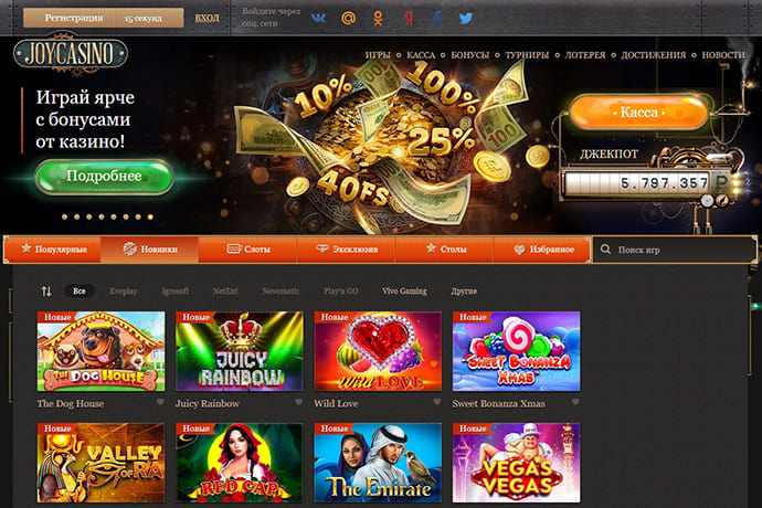 JoyCasino – это онлайн казино, созданное приносить удовольствие каждому игроку, который решит открыть свой игровой счет. Это надежный игровой клуб, который работает на iGaming рынке уже около 10 лет и по-прежнему пользуется большой популярностью у гемблеров. От дизайна и пользовательского интерфейса до игровых автоматов на деньги и бонусов, здесь есть все, что нужно даже самому требовательному игроку.